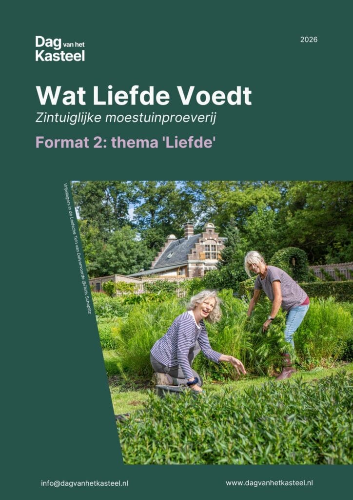 Met ‘Wat liefde voedt’ laten bezoekers het verleden écht ervaren: proeven, ruiken en reflecteren staan centraal. De activiteit verbindt de historische moestuin met hedendaagse thema’s zoals zorg, tijd en delen, en nodigt uit om op een tastbare manier te ontdekken wat liefde door de eeuwen heen voedt.