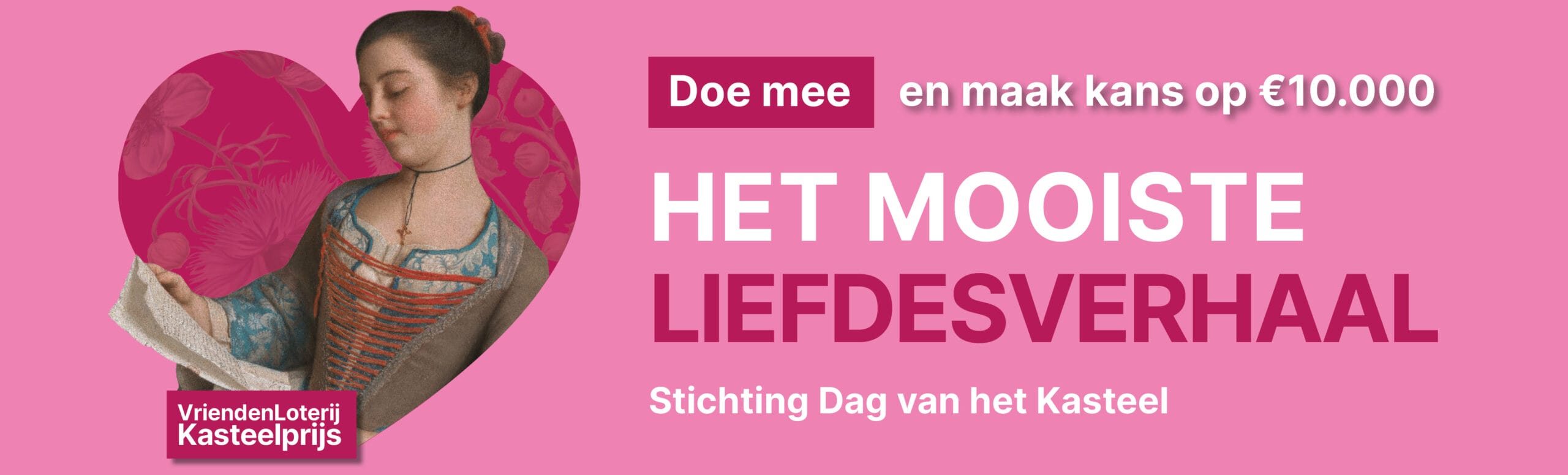 Stichting Dag van het Kasteel roept alle deelnemende erfgoedlocaties op om hun mooiste liefdesverhaal te delen. Dit jaar staat de VriendenLoterij Kasteelprijs in het teken van ‘Het mooiste liefdesverhaal’, waarin romantische relaties, verstandshuwelijken, verboden affaires en onverwachte vriendschappen centraal staan.